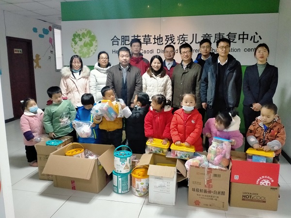 为彰显文明单位精神文明风采,广泛开展志愿服务关爱行动,近日,华体官方网页版_华体(中国)设备室党员走进芳草地残疾儿童康复中心,看望一群特殊却又同样可爱的小天使——听障儿童,给孩子们送上生活学习用品与祝福,为他们撑起爱的天空。