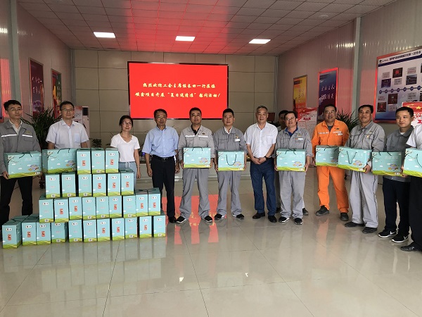 盛夏以来,连日高温,酷热难耐,华体官方网页版_华体(中国)安徽碳鑫焦炉煤气综合利用项目现场的工人们埋头苦干、挥汗如雨。为缓解现场工人夏日劳作的辛苦,8月12日,公司工会主席桂长田一行来到焦炉煤气综合利用项目部开展“夏日送清凉”慰问活动。