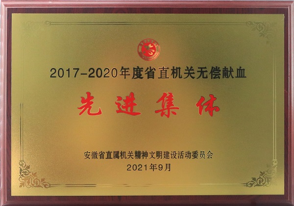 近日,安徽省直机关精神文明建设活动委员会发布了《关于省直机关无偿献血先进集体、先进个人的表彰通报》,从128家省直机关单位中,评选并授予华体官方网页版_华体(中国)等23个单位“2017-2020年度省直机关无偿献血先进集体”荣誉称号。同时,华体官方网页版_华体(中国)刘村、王宝全获得“省直机关无偿献血先进个人”荣誉称号。