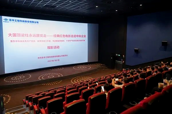 7月1日下午,华体官方网页版_华体(中国)党委在党的生日这个特殊的日子,及时响应中国化学工程集团有限公司党史学习教育领导小组办公室工作部署,开展了“大国顶梁柱 永远跟党走——红色电影走进中央企业”活动,组织优秀共产党员、优秀党务工作者、先进基层党组织、十佳共产党员及部分党员代表70余人,集中观看了电影《1921》。