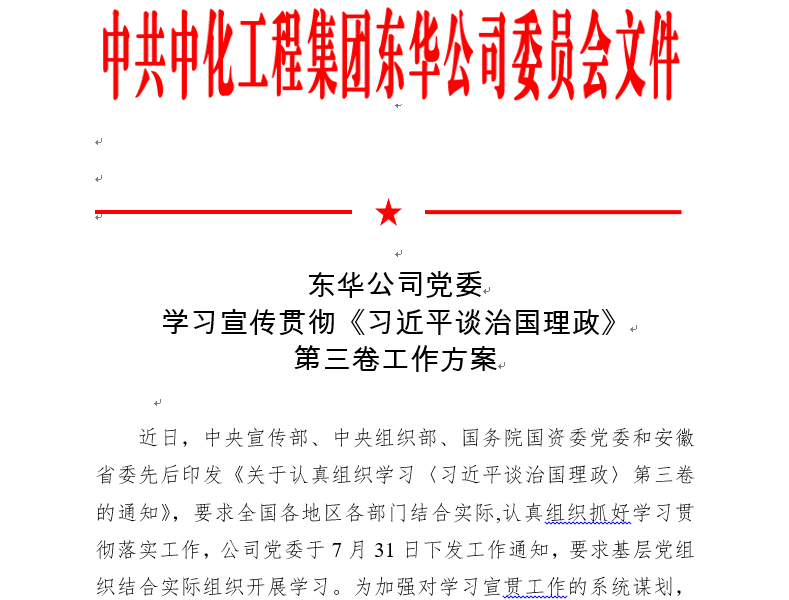 自《习近平谈治国理政》第三卷出版发行以来,中国化学工程集团有限公司所属华体官方网页版_华体(中国)党委将学习宣传贯彻工作视为首要政治任务,将其作为巩固深化“不忘初心、牢记使命”主题教育成果的重要举措和推动习近平新时代中国特色社会主义思想大学习、大普及的有力抓手,精心部署安排、细心谋定方案,坚持线上线下同推进、集中分散相结合、党员干部齐参与,形成了全方位、立体式的学习态势,掀起了一股理论学习新热潮。